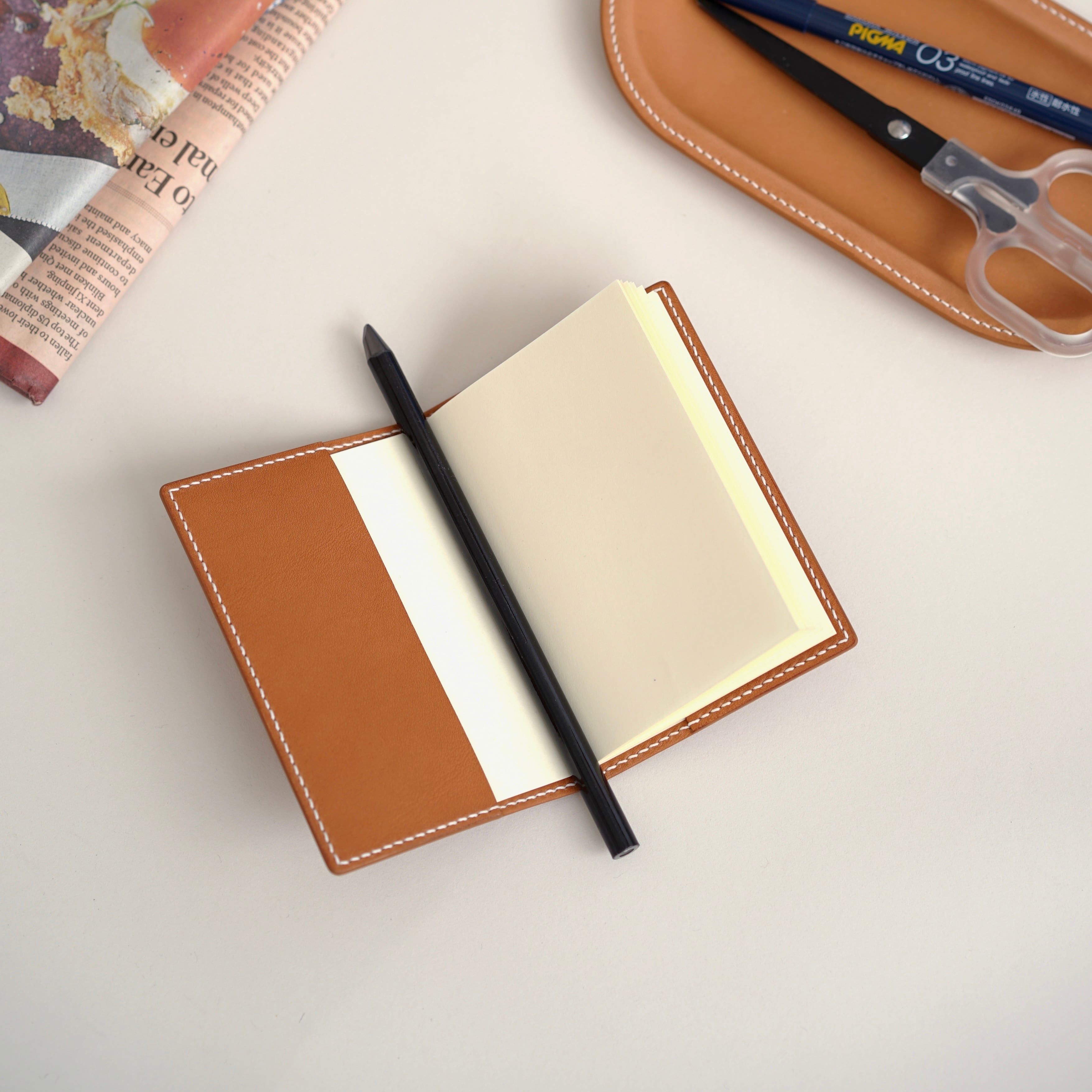 こちらは購入時、お写真にもある無地のメモ帳をおつけ致しますので